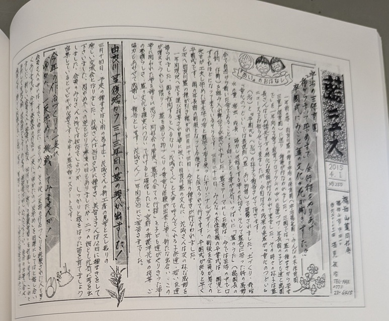 今号の内容は「藍染めは誰でもできる」といったいつも市民講座で講義されている講義の紙上講座や、福知山藍同好会の歴史、弊園の様子が掲載されています2015年の同好会報など、活動の様子が記されています。藍ニュースは2014年6月No.240~現在までの分が掲載。